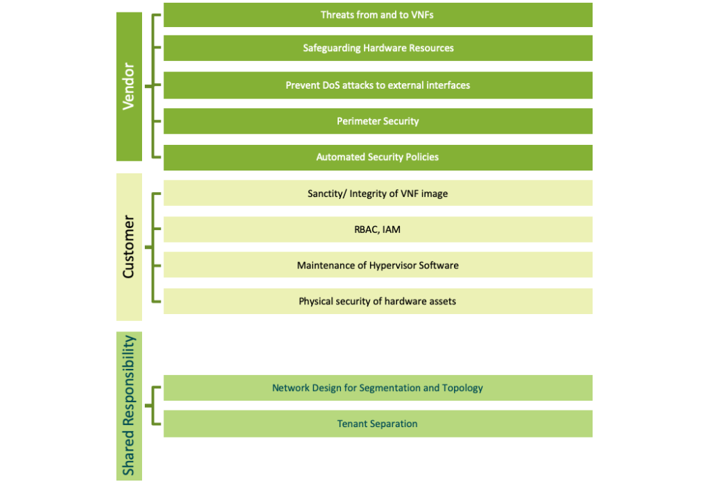 Security vendors such as Juniper, safeguard users, applications and infrastructure throughout the network. The security of the macro environment (as it pertains to the network) is in the purview of the network designers and the implementation of the best practices as laid out in numerous reference documents. When working together, the security vendor and the customer form the basis of a Shared Responsibility model, where the former is responsible for the security of the network, infrastructure and the perimeter while the latter is responsible for the ensuring the sanctity of the VNF images, Hypervisors and the Identity and Access Management.